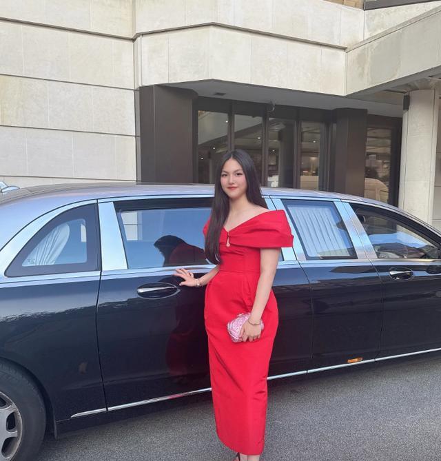 16岁的王诗龄留着乌黑的披肩长发,身着大红的露肩长裙,两腕戴着手镯,左手还拿着一个粉色的高档坤包,十足的名媛打扮,尽显高贵、典雅、惊艳。